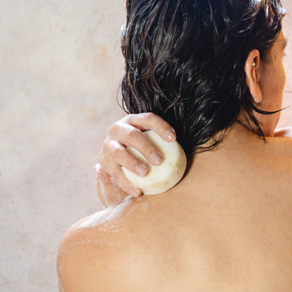 Después del shampoo, humedece la barra de acondicionador y frótala suavemente entre las manos y luego directamente sobre el cabello, de medios a puntas. Masajea y deja actuar de 1 a 3 minutos. Enjuaga con abundante agua.